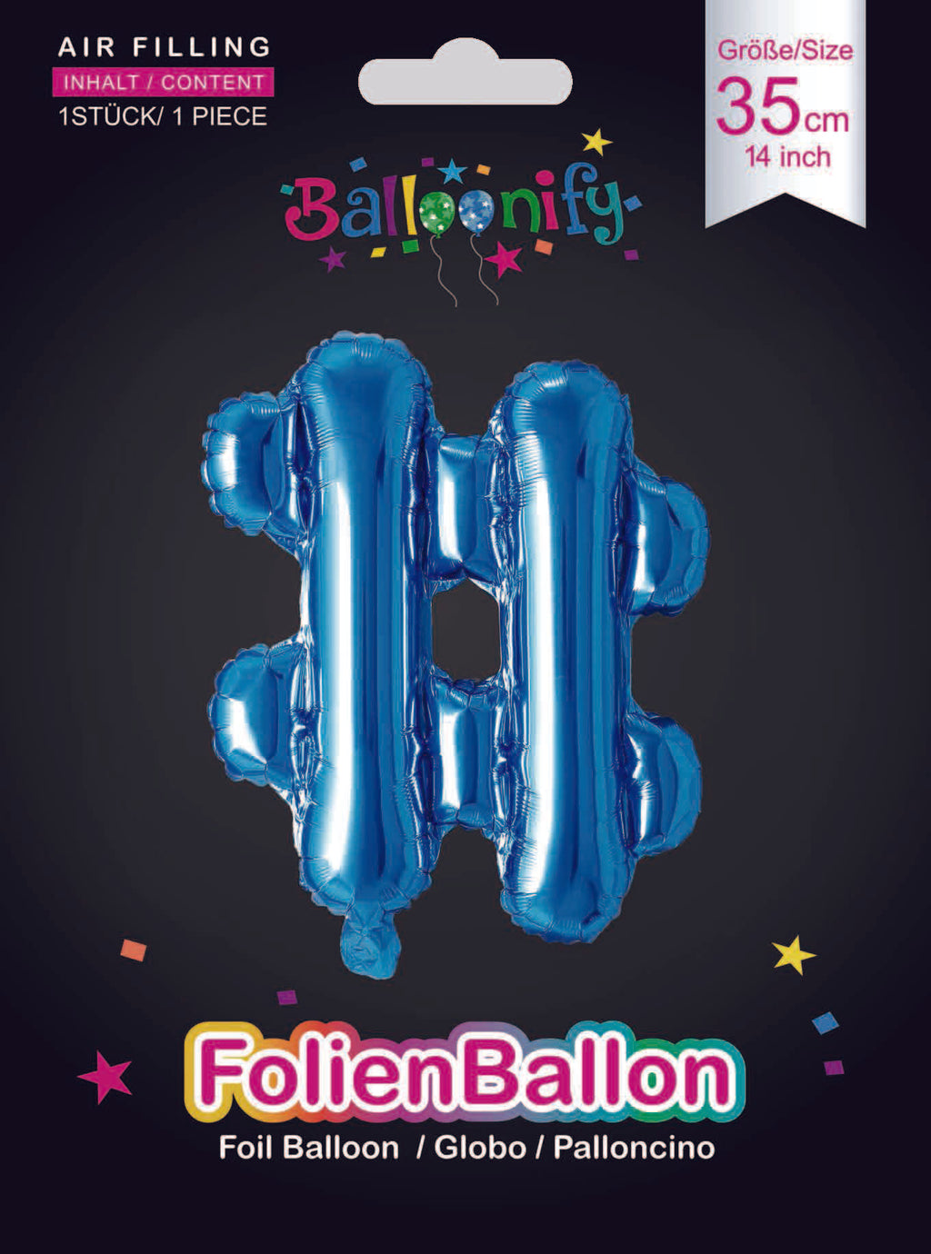 Folienballon Sonderzeichen # in Blau, 35 cm